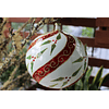 Esfera 16 cm de ancho. Incluye base de herrería pintada en dorado. Alto de la base 19cm. Ancho de la base 15cm
